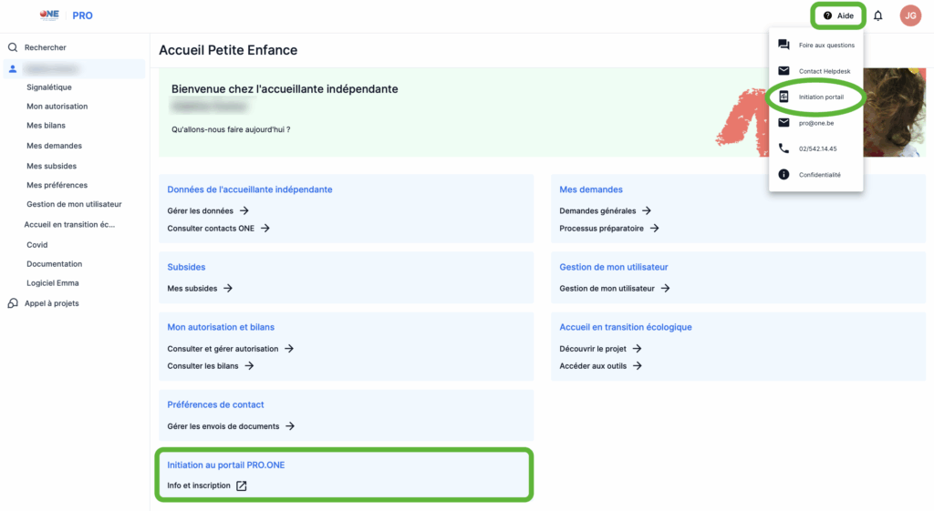 2) Sur votre page d’accueil, cliquez sur « Initiation au portail Pro.ONE » ;