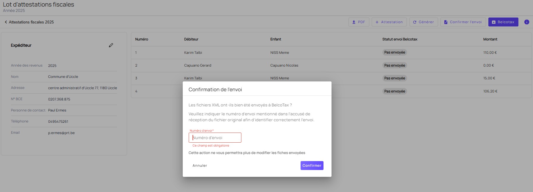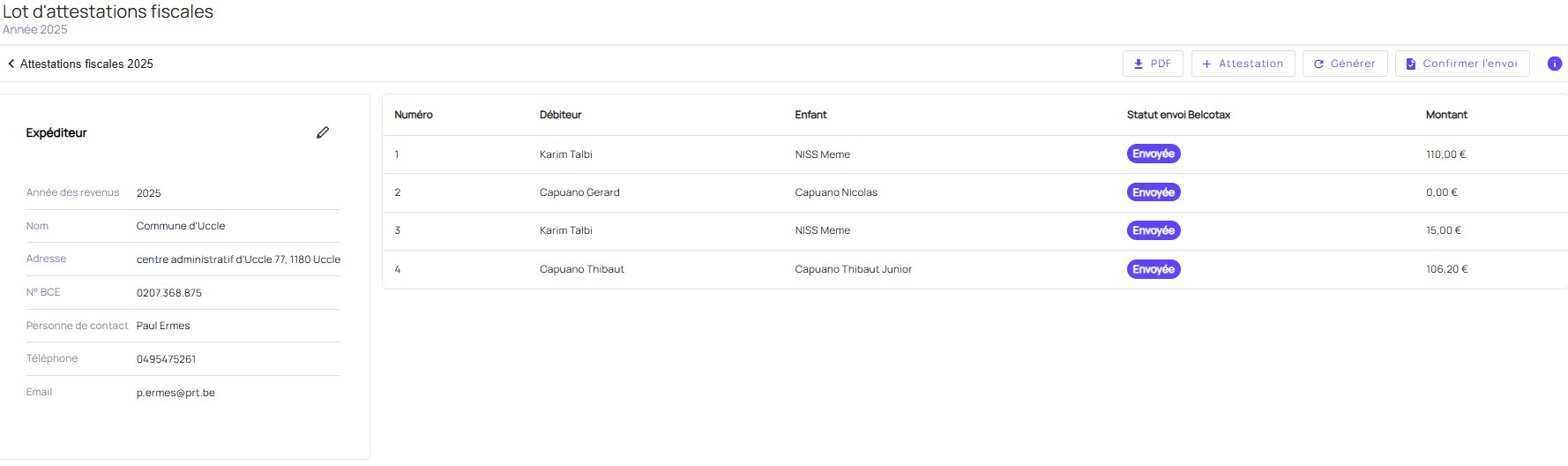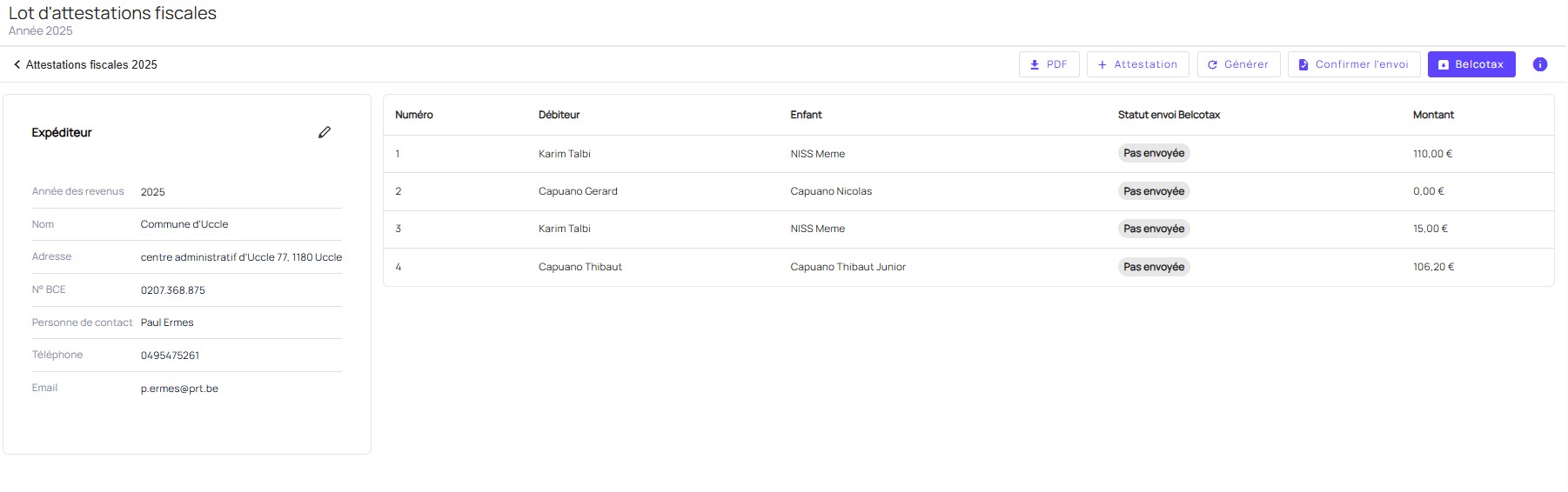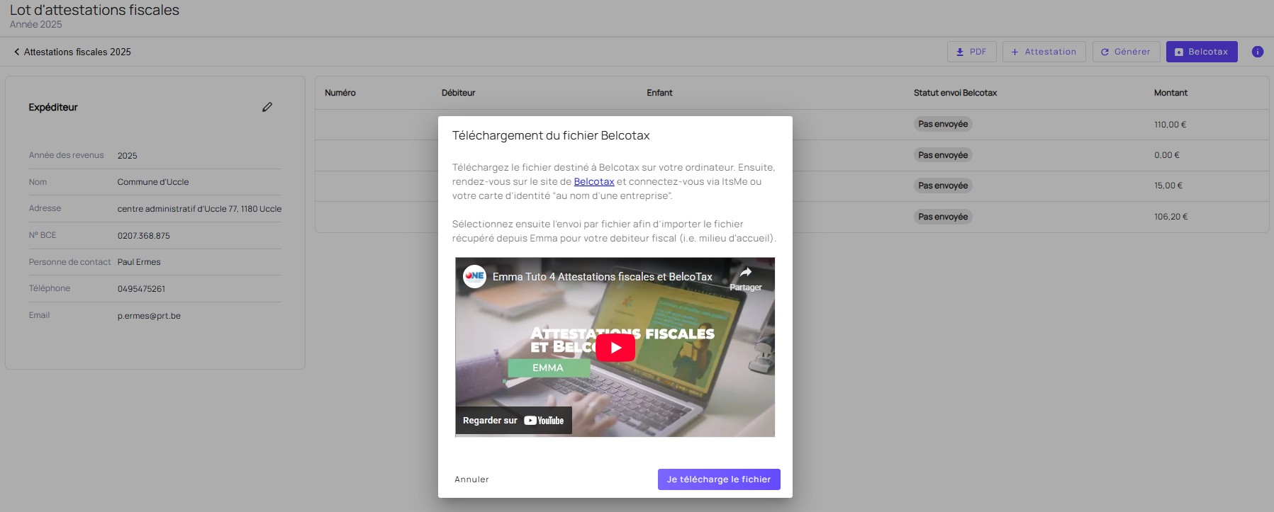 EMMA créera automatiquement un lot d’attestations fiscales basé sur les données existantes.