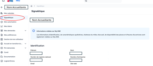 - Rendez-vous sur « Signalétique » de votre portail Pro.ONE